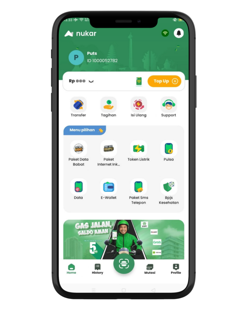 Aplikasi transaksi digital multifungsi yang mendukung berbagai kebutuhan pembayaran harian masyarakat dan institusi.
